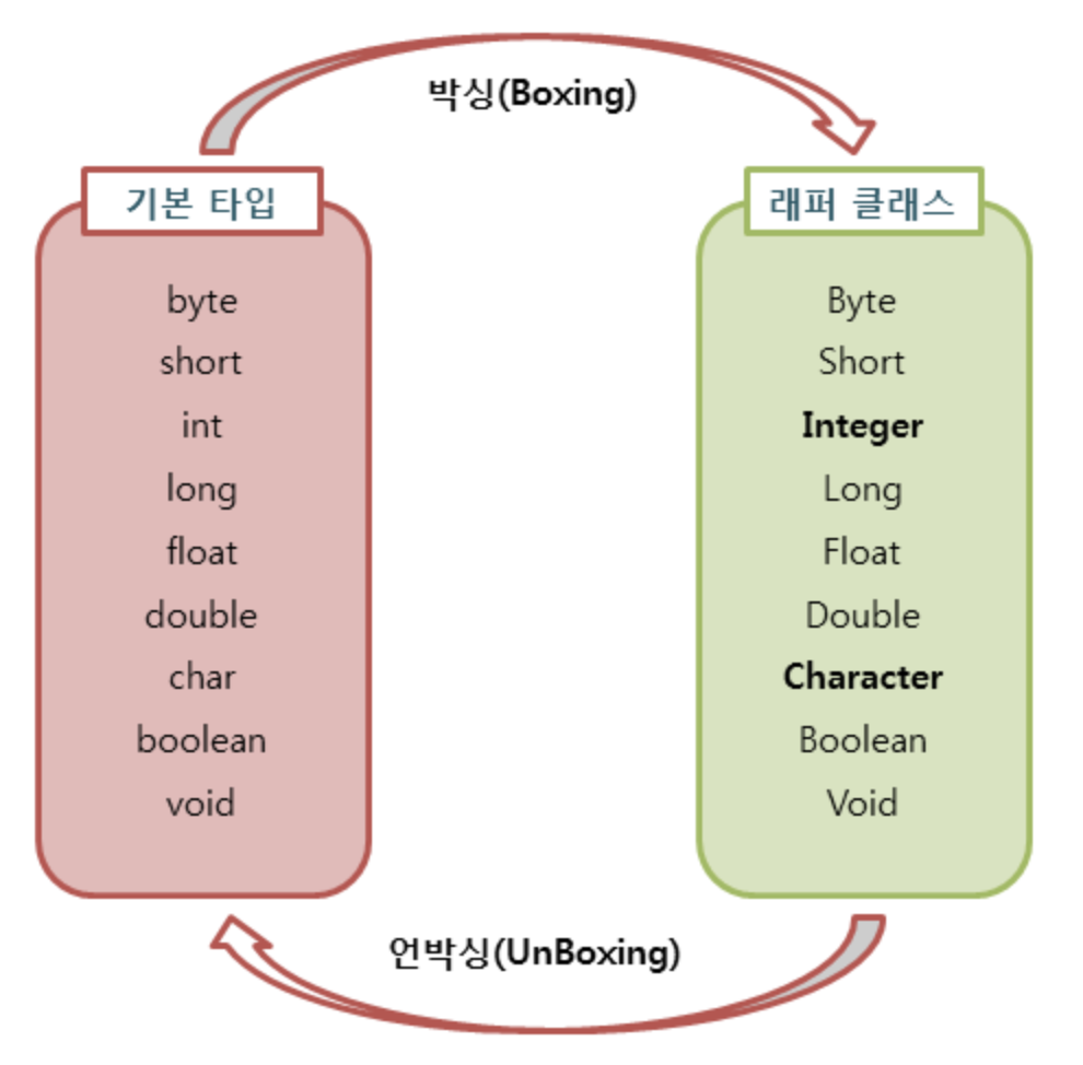 - Boxing : 기본 타입의 값을 Wrapper 객체로 만드는 과정